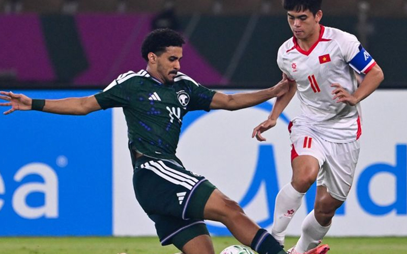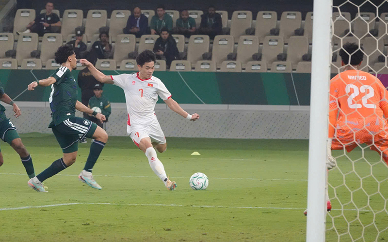 Khoảng thời gian đầu chứng kiến Ả Rập Xê Út kiểm soát bóng vượt trội, liên tục ép sân và tạo ra nhiều tình huống nguy hiểm. Phút 43, khung thành U23 Việt Nam rung chuyển khi cú đánh đầu của Thamer Al Khaibri đưa bóng dội cột dọc, pha bóng khiến các cổ động viên áo đỏ thót tim. Tuy nhiên, hàng thủ Việt Nam vẫn đứng vững để khép lại hiệp một với tỷ số hòa 0-0.