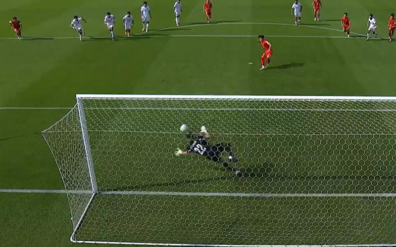 Trước khi hiệp một khép lại, lợi thế tiếp tục được nhân đôi. Phút 42, từ quả phạt góc được thực hiện chuẩn xác, Hiểu Minh chọn vị trí khôn ngoan, băng cắt vào điểm rơi rồi đệm bóng cận thành, khiến hàng thủ Jordan không kịp trở tay. Tỷ số 2-0 phản ánh đúng cục diện trong 45 phút đầu tiên.
